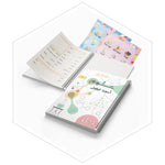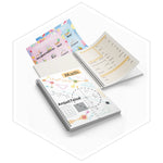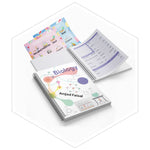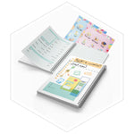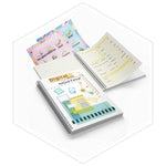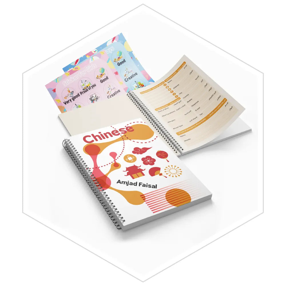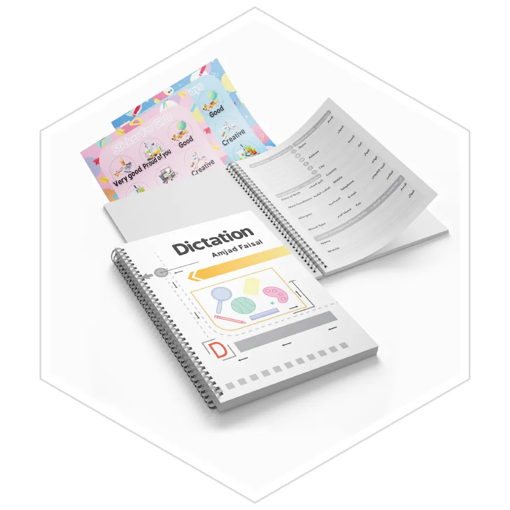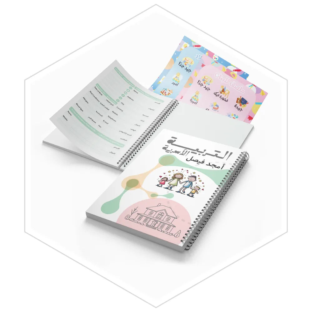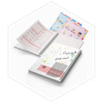 * ورقتين من الاستكر بعبارات تحفيزية وتشجيعية في نهاية الدفتر. واحدة بالوان مخصصة للأولاد والأخرى بألوان محببة للفتيات .